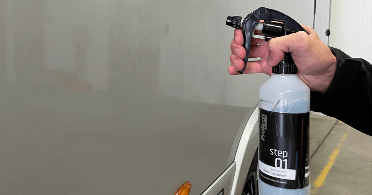 Daarna wordt de lak volledig ontvet met Step 01, kleine vlekjes en kitranden worden verwijderd. Dit product opent de poriën van de lak, waardoor de coating optimaal kan hechten.