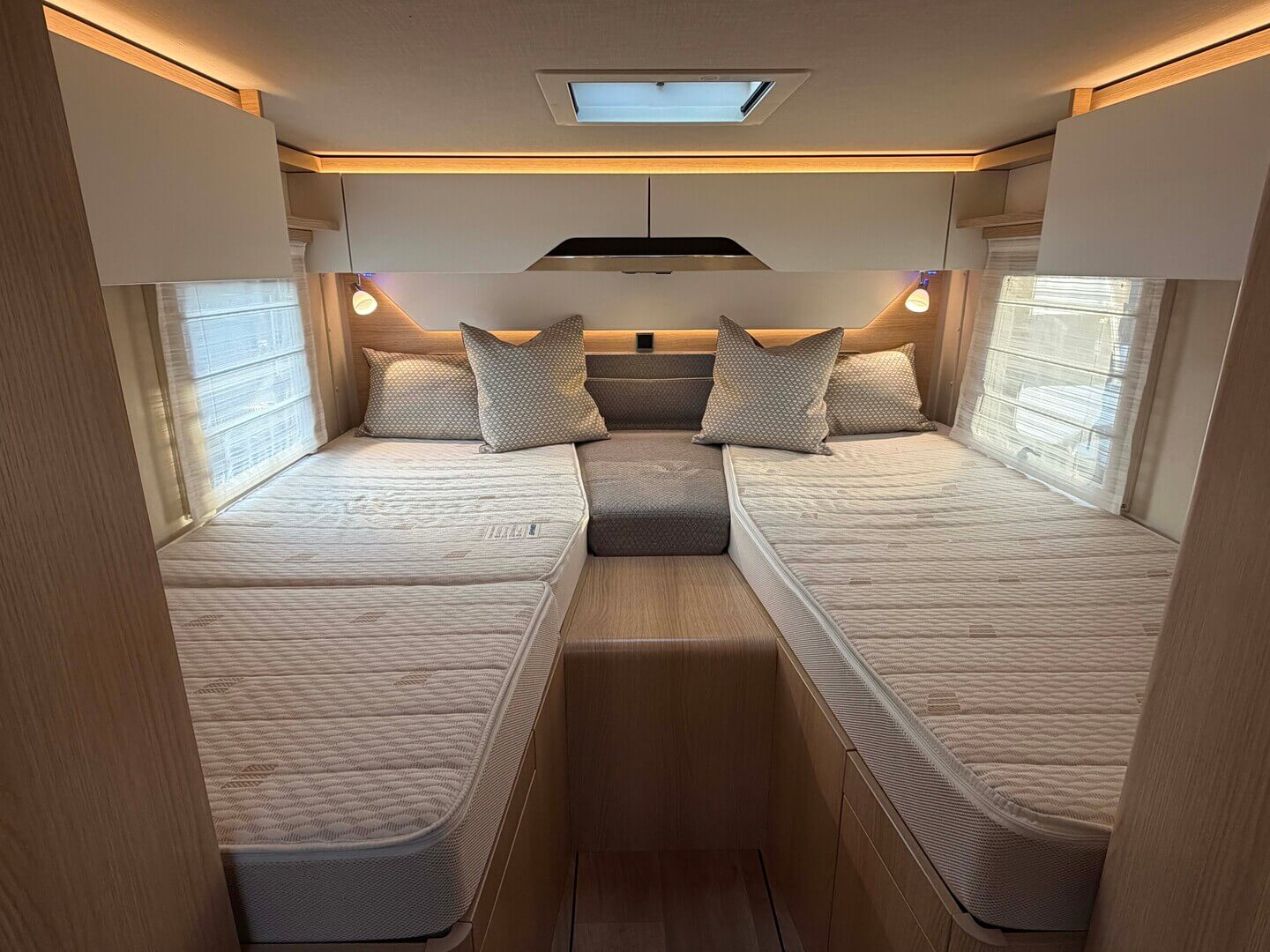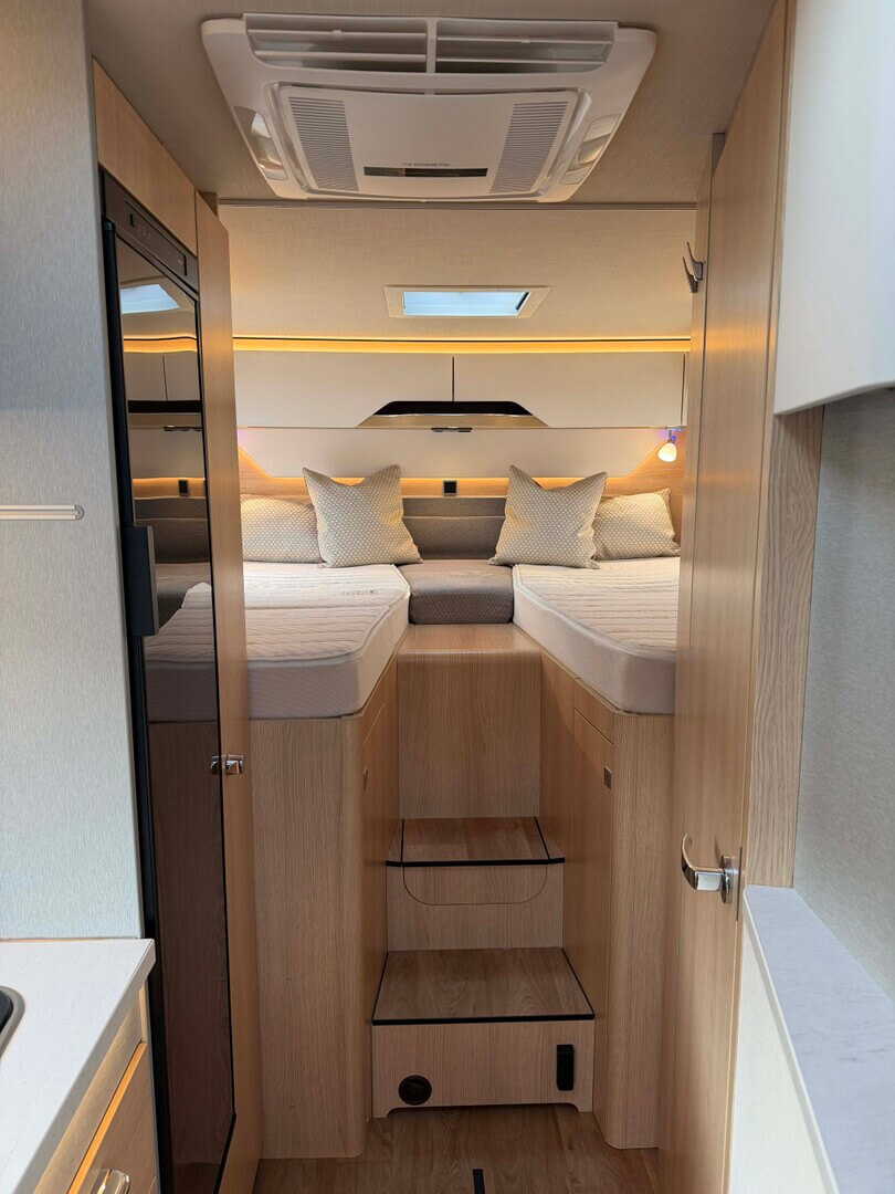 - Extra kussens tussen de twee eenpersoonsbedden in de lengterichting inclusief geïntegreerde comforttrap