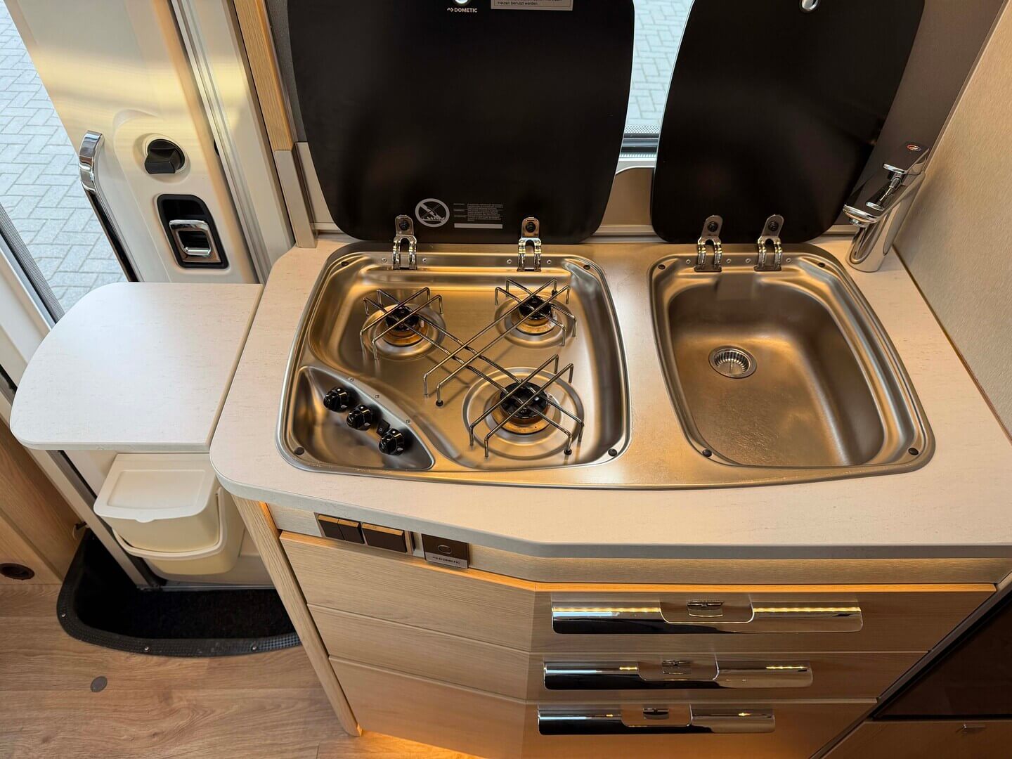 - 4 x 230 V / 1 x 12 V / 1 x dubbele USB extra stopcontacten (incl. keukenwand bekleding)