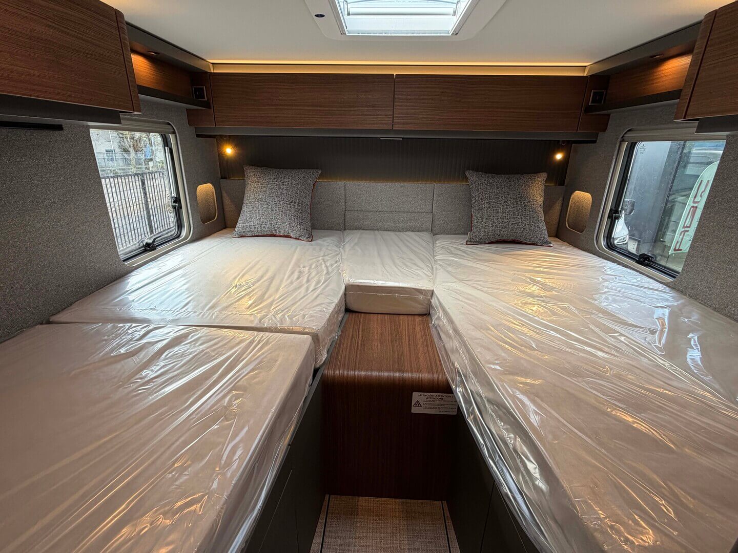 - Extra kussen tussen de eenpersoonsbedden met geïntegreerde opstap en tableau