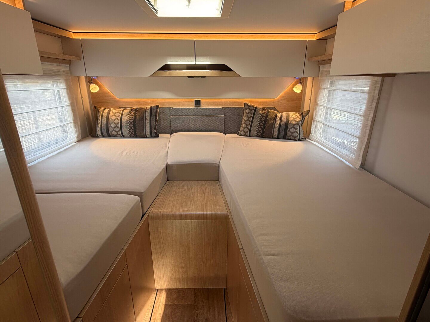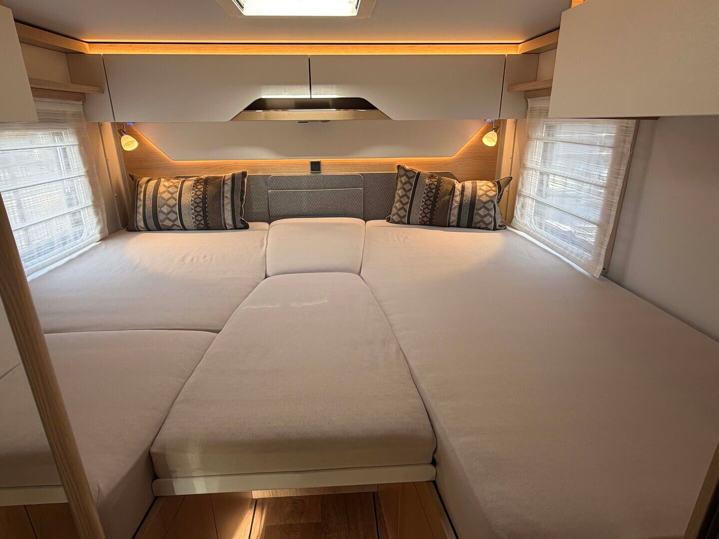 - Extra kussens tussen de eenpersoonsbedden in de lengterichting, inclusief geïntegreerde comfortopstap
