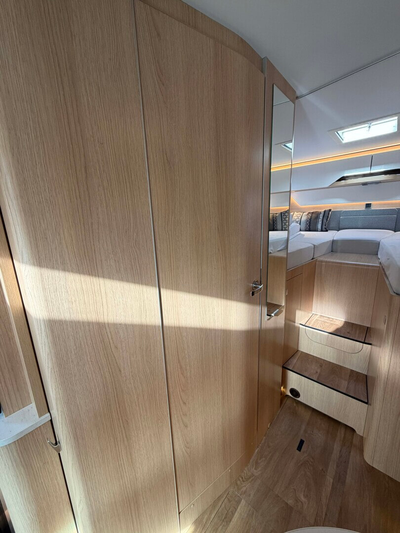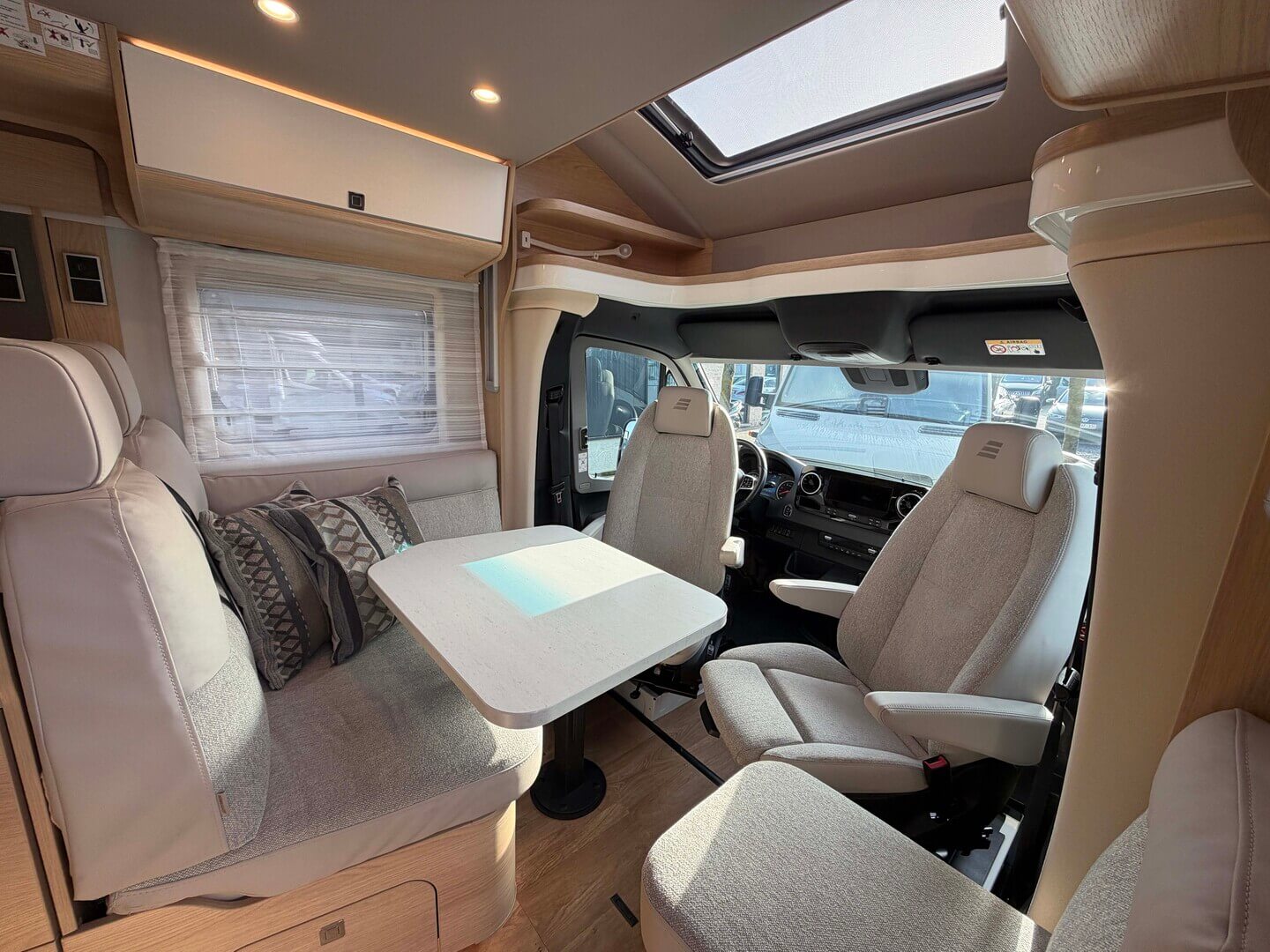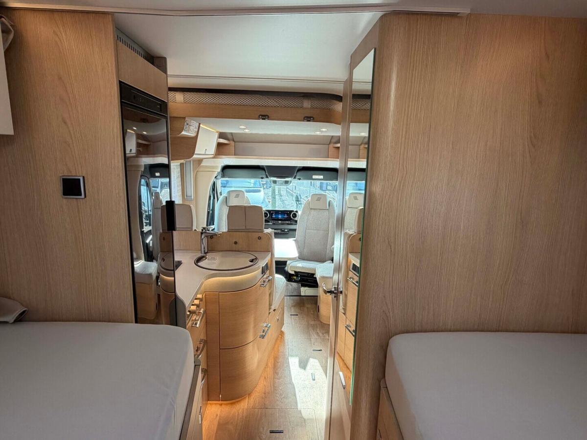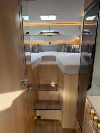 - Elektrisch neerlaatbaar tweepersoonsbed boven de zitgroep met koudschuimmatras incl. dakintegratie