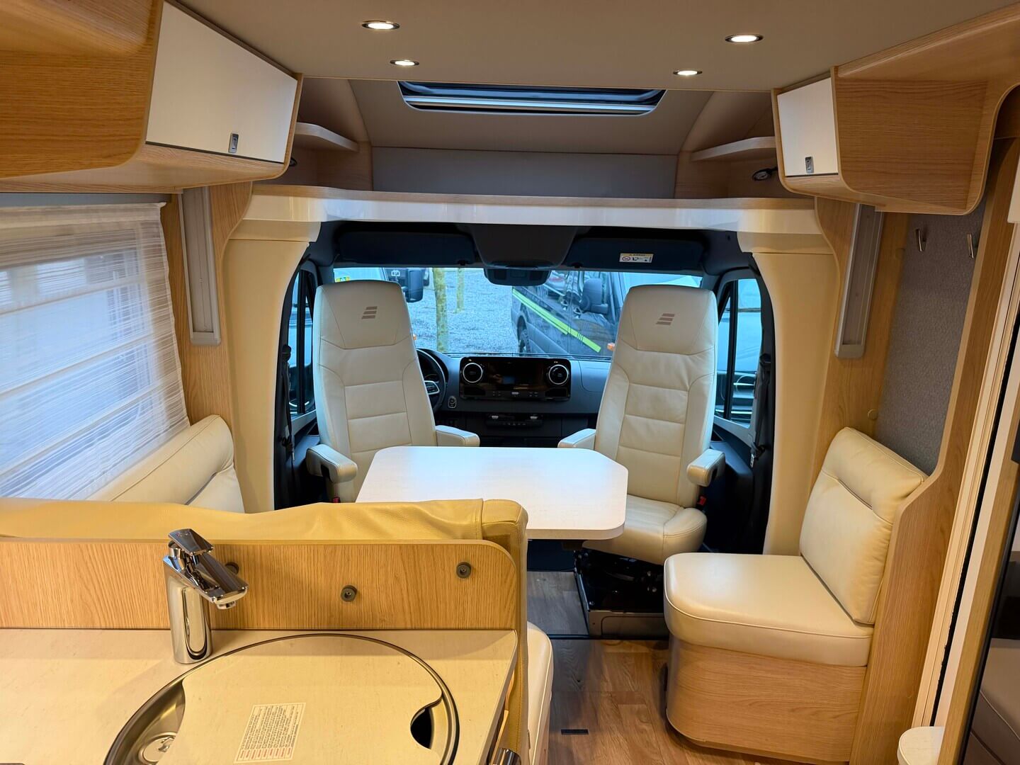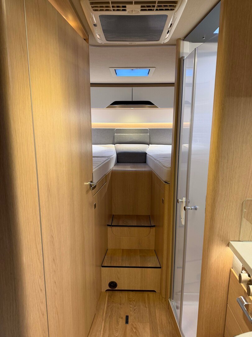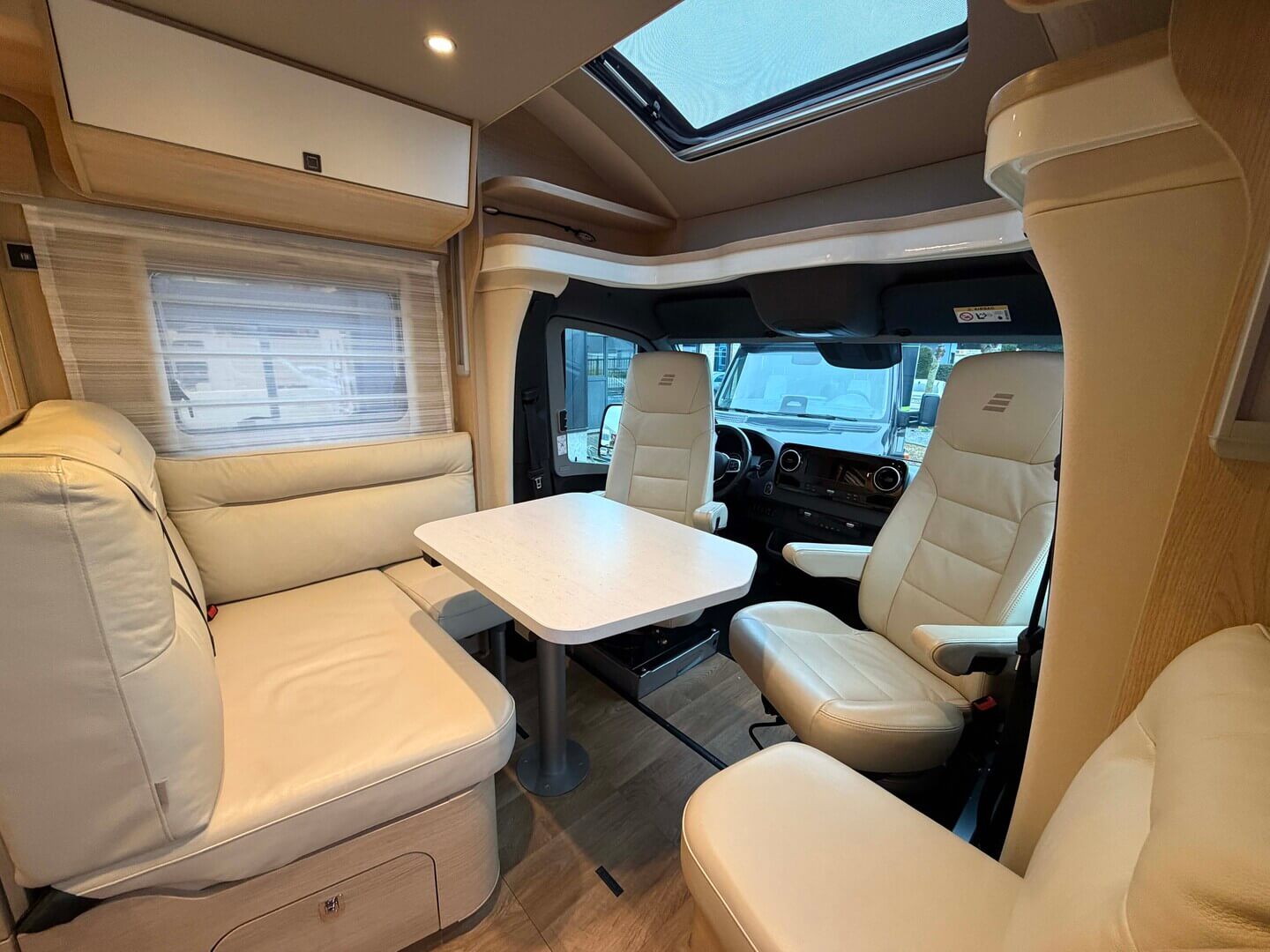 - Comfort L-zitgroep met loungebekleding, lengte en breedte verst. tafel neerlaatbaar tweepersoonsbed boven zitgroep (elektrisch)