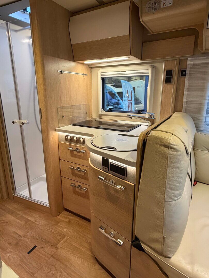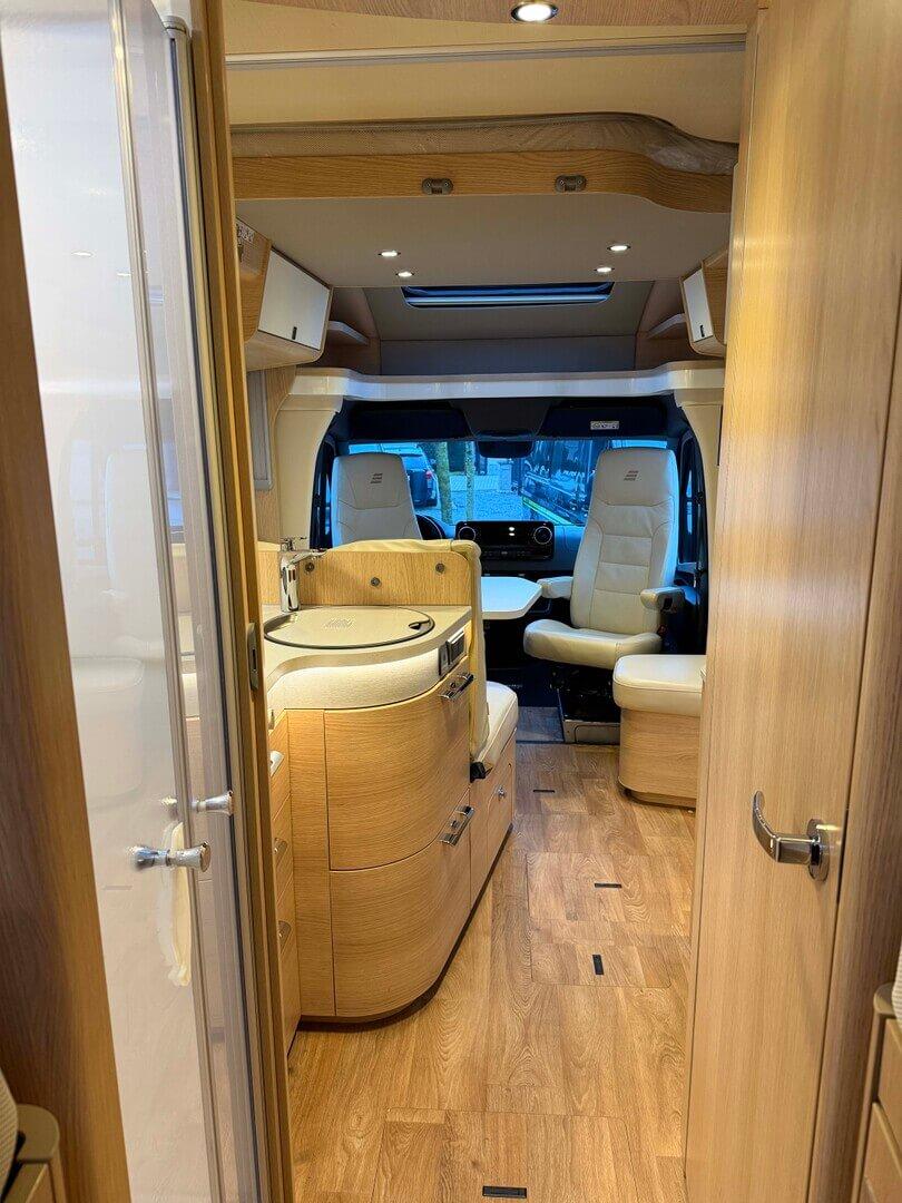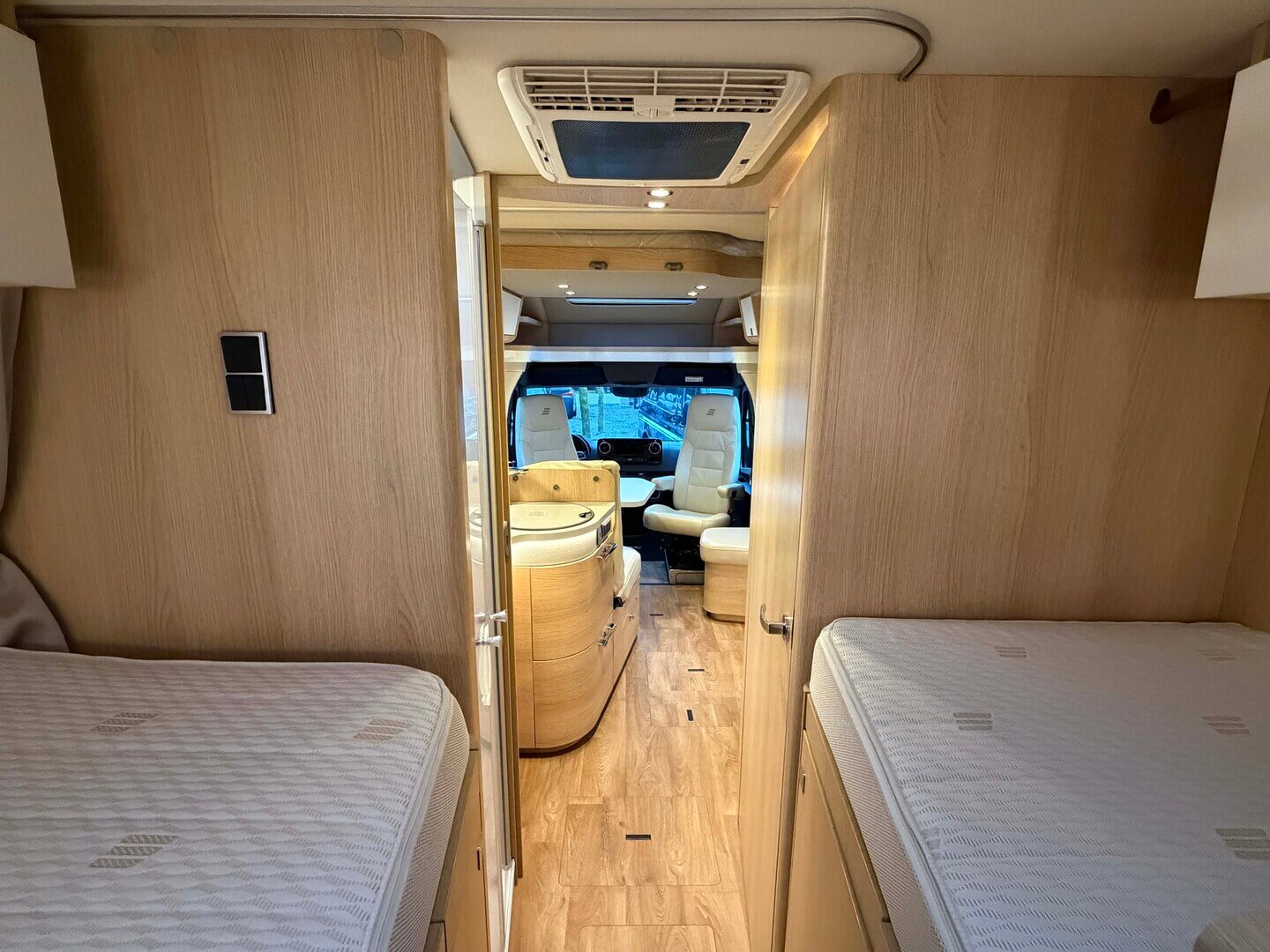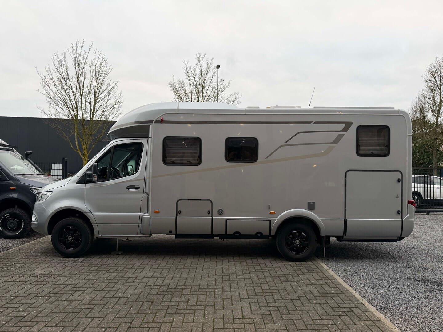 - Comfort L-zitgroep met loungebekleding, lengte en breedte verst. tafel neerlaatbaar tweepersoonsbed boven zitgroep (elektrisch)
