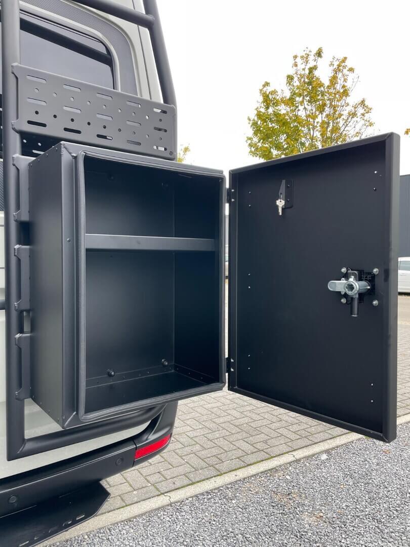 - Ladder incl. versterking en extra opstap gemonteerd op de rechtse deur