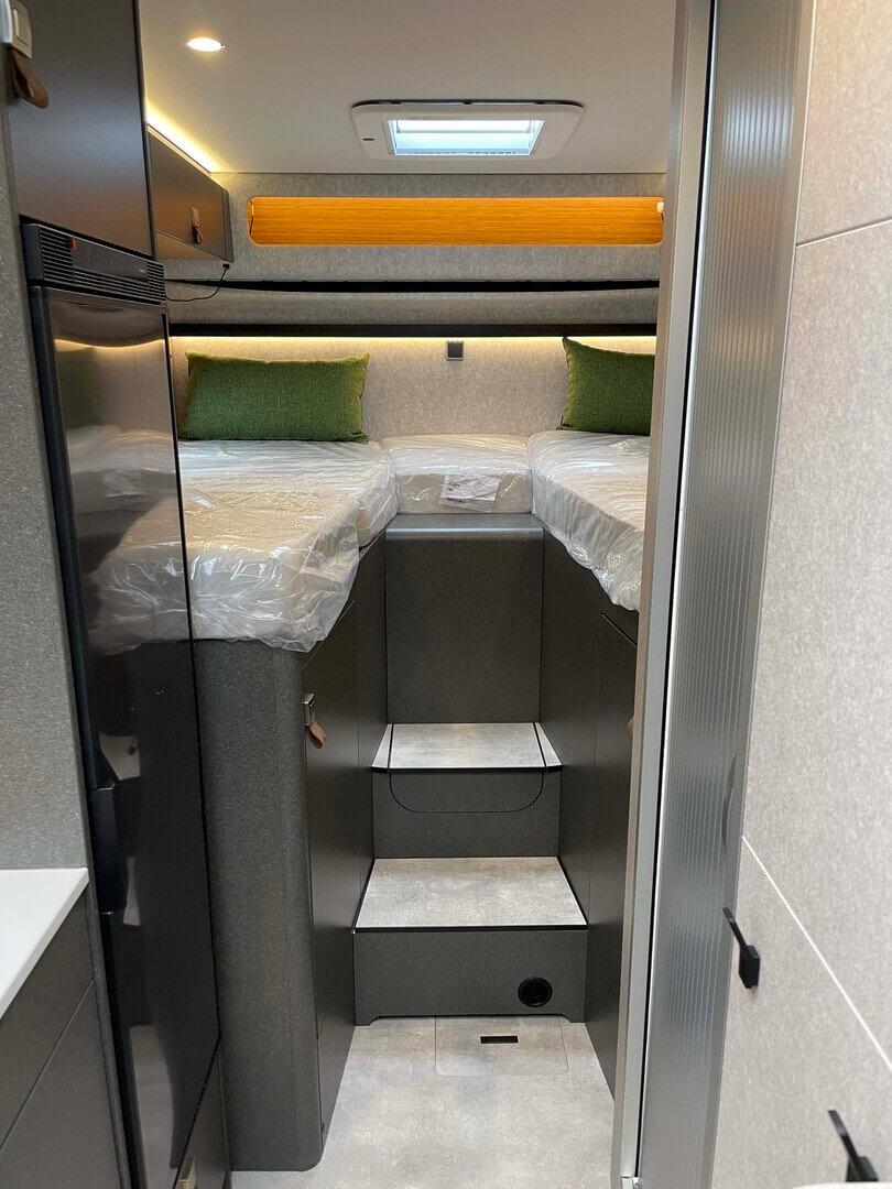- Extra kussens tussen de twee eenpersoonsbedden in de lengterichting inclusief geïntegreerde comforttrap