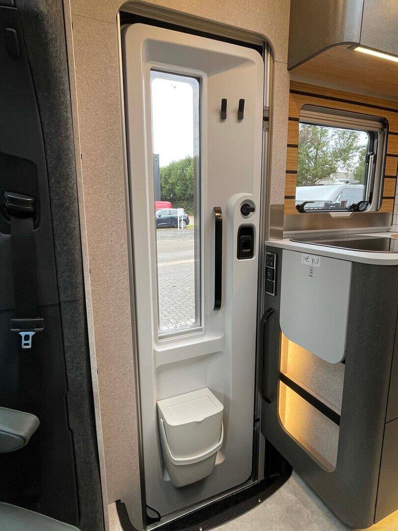 - Comfort ingangsdeur met raam, verduistering, geïntegreerde prullenbak en 2-voudige vergrendeling