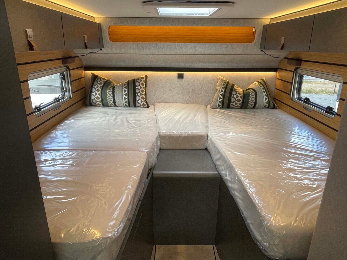 - Extra kussens tussen de twee eenpersoonsbedden in de lengterichting inclusief geïntegreerde comforttrap