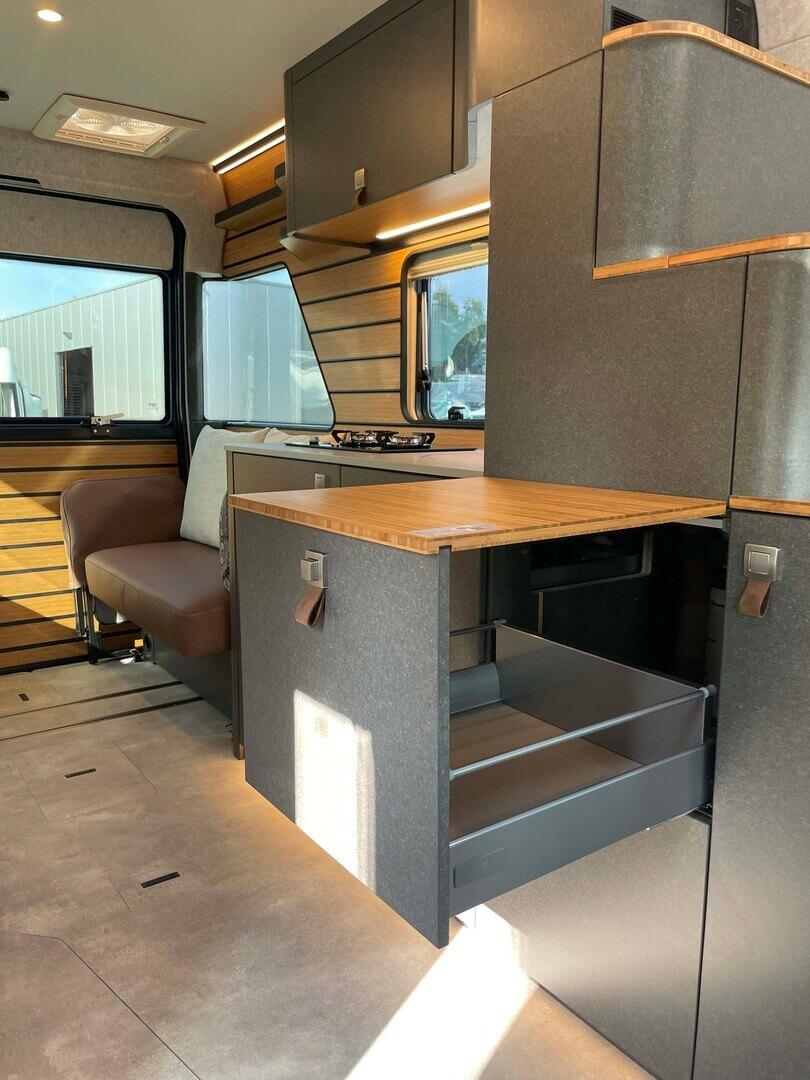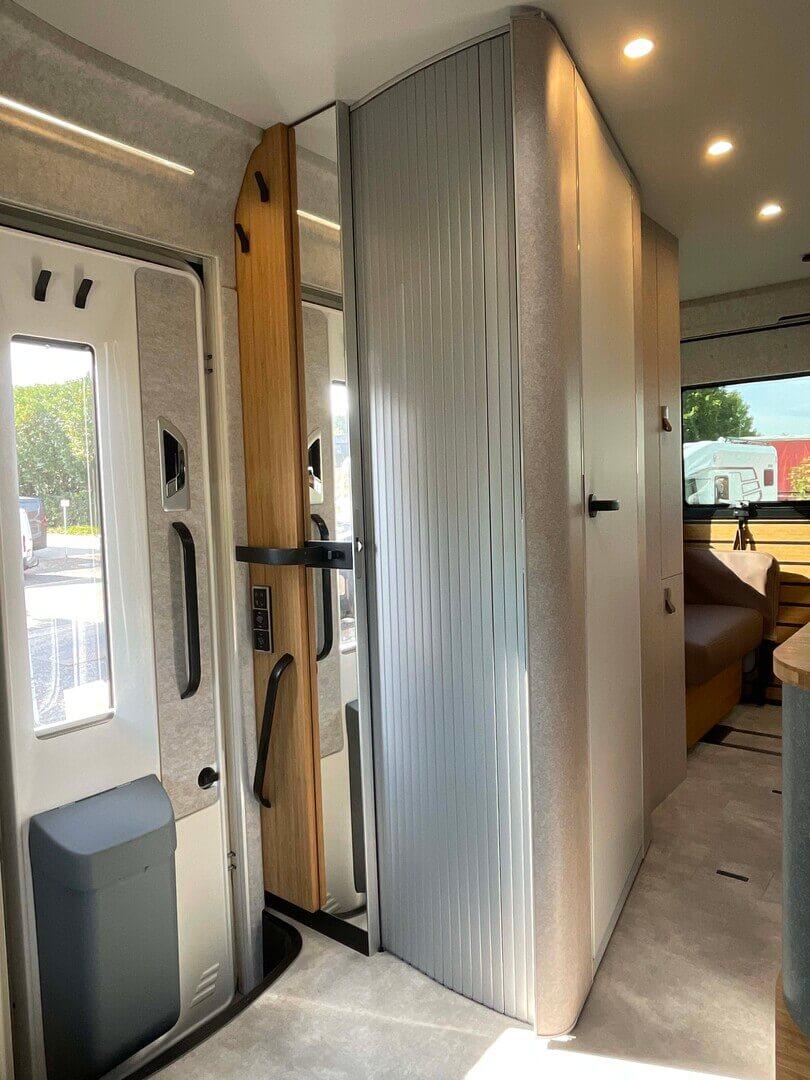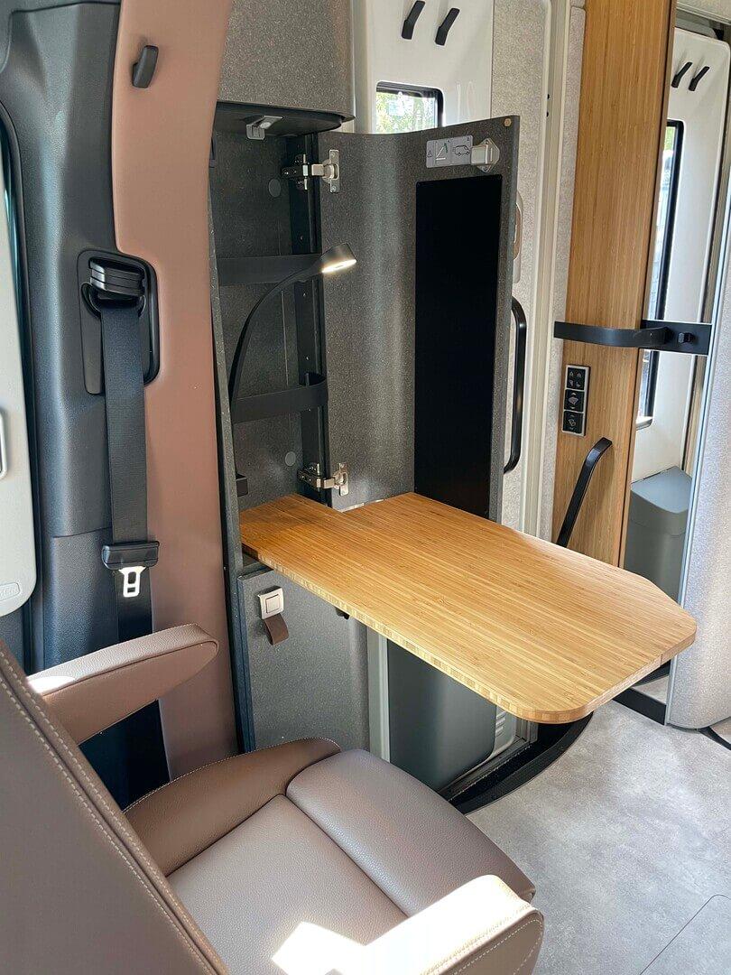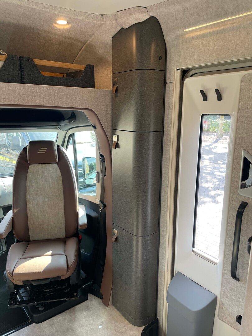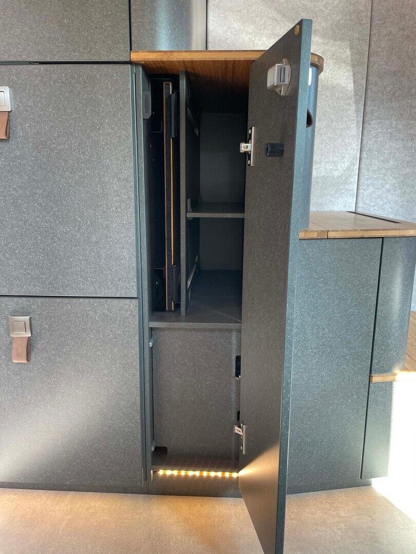 - Opbergsysteem in de cabine met vilten afwerkbakken